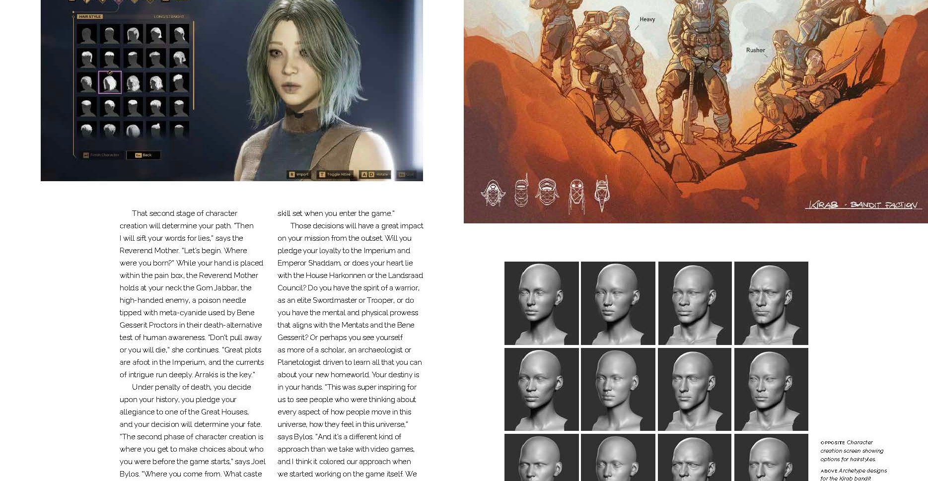 A arte inclui ilustrações, esboços conceituais e renderizações digitais, mostrando a mecânica de jogabilidade. O Publisher Insight Editions deu ao Polygon uma prévia exclusiva de quatro dos spreads de duas páginas, desde uma olhada na criação de personagens até uma sanduormes de punção.
