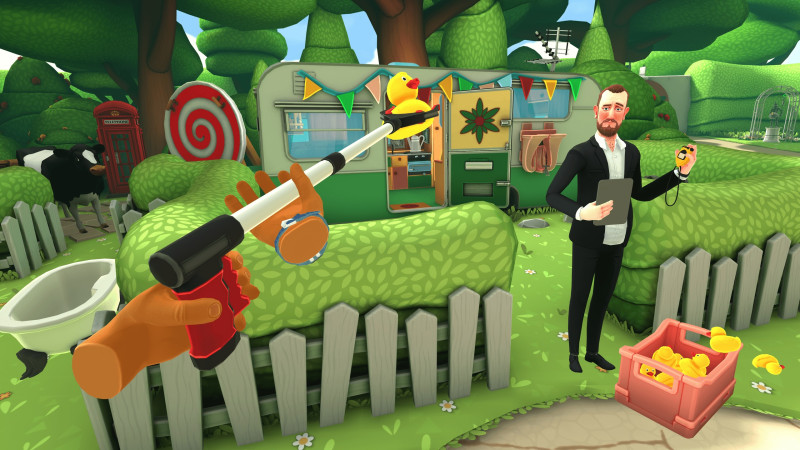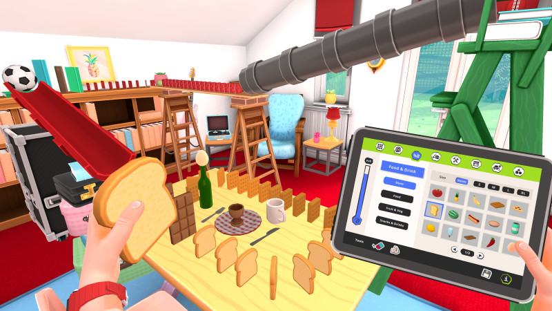 É tão preciso. Tipo de desnecessariamente preciso. A casa em si na vida real é decepcionantemente pequena. É um bangalô. Há apenas um andar. Há apenas cerca de cinco quartos. Então, poderíamos fazer qualquer coisa com a casa. Mas, em vez disso, recriamos absolutamente fielmente a casa do Taskmaster [laughs]. Mas é incrível. Você pode abrir todos os armários e verá coisas do show. Existem muitos ovos de Páscoa, coisas escondidas que são irrelevantes. E todos os quartos são praticamente a dimensão certa, tivemos que inchar um pouco o corredor na cozinha, porque eles são mais estreitos na vida real. É ótimo. E também, há muito potencial. Na casa real do mundo real, há uma porta que abre e não tem nada por trás, exceto uma tela verde, o que nos dá potencial … nunca a usamos. Mas, da mesma forma, na casa de VR, você pode abrir uma porta e acabar em um local diferente.