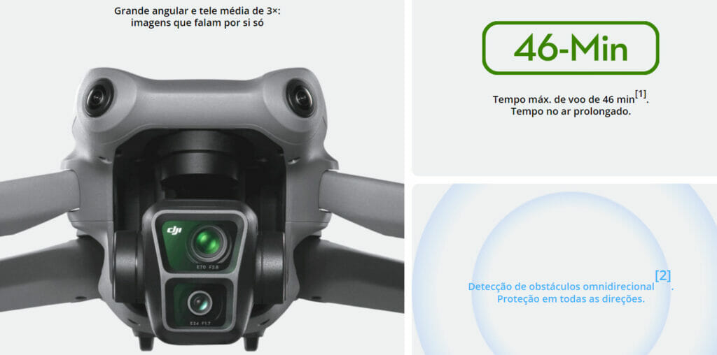 ● O DJI Air 3 tem um sistema de detecção de obstáculos omnidirecional que