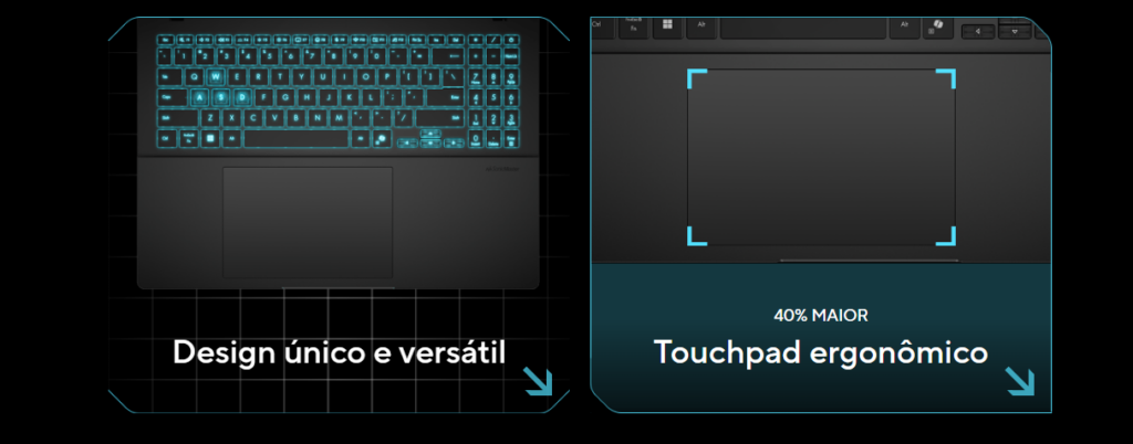 E para suportar esse nível de uso intenso, o ASUS V16 foi construído seguindo padrões militares de resistência e conta com sistema de resfriamento silencioso que mantém a máquina funcionando mesmo durante longas jornadas.