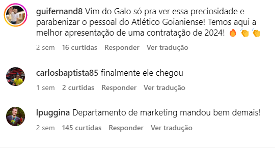 “¡ES DEL DRAGÓN! É DO DRAGÃO! O meia-atacante Alejo Cruz (23 anos) é mais uma novidade internacional do Atlético Goianiense para temporada. O uruguaio se destacou pelo Danubio e chega ao Dragão com contrato até o final da temporada 2024. Nome de craque…do videogame! 😅🎮✍️” diz a postagem original, que pode ser conferida aqui.