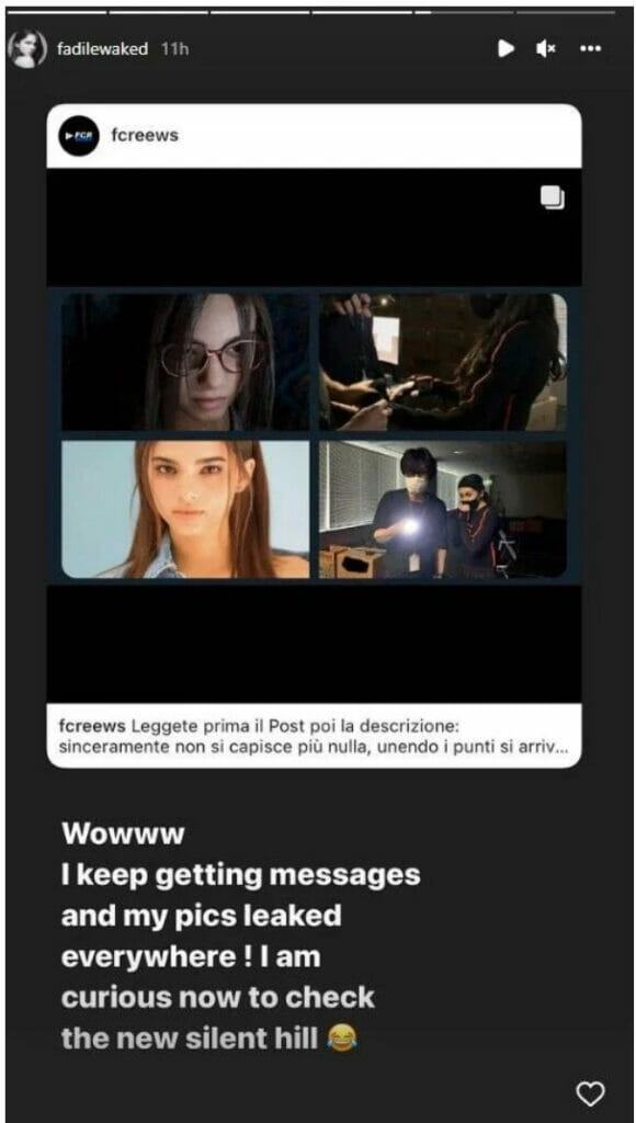 Conforme coberto pelos fãs de Silent Hill em um post do Reddit por MinatoHikari (via GamesRadar), a atriz brasileira Fadile Waked recentemente fez uma publicação no Instagram comentando as imagens vazadas, dizendo que ela vem recebendo mensagens desde que suas “fotos vazaram em todos os lugares”.