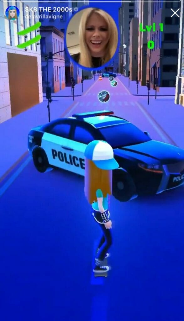 Se trata de um game num filtro de realidade aumentada do Instagram, lançado na última sexta-feira (17), situado no universo dos clipes de ‘Sk8er Boi’ e ‘Complicated’. O jogo oferece diversas opções de avatares e um emocionante passeio de skate. A direção você controla com os movimentos da cabeça.