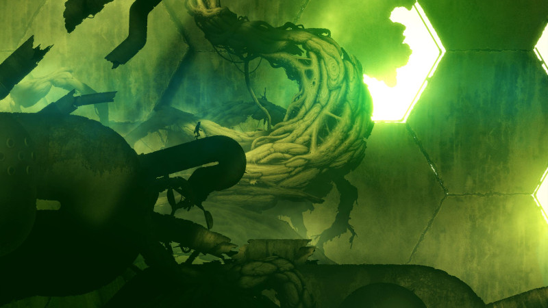 Felizmente, a experiência central da plataforma 2D é notavelmente divertida. Enquanto se movia pelos feixes caídos, crescidos orgânicos estranhos e os remanescentes da tecnologia meio construída, a corrida e o salto são rápidos e geralmente precisos, mesmo que eu estivesse frustrado por sequências de movimento pontuais específicas, como uma através da água.