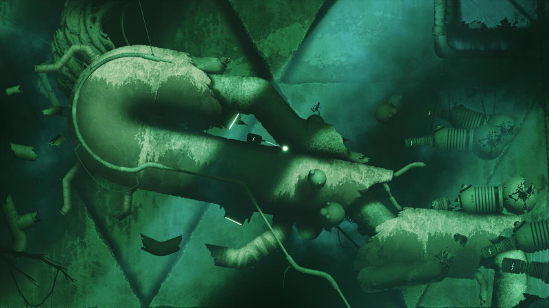 Bionic Bay abre com um fatídico acidente de laboratório, após o qual um trabalhador infeliz se encontra em um mundo catastroficamente perigoso de lâminas giratórias, caixas esmagadoras, raios congelantes e mudanças repentinas na gravidade. Apesar das entradas ocasionais de texto do tipo diário que você descobre ao longo do caminho, a história é quase inexistente. Um mistério mais amplo é mencionado, mas fiquei desapontado com a ausência de um acompanhamento significativo. Não é que eu precise de todas as respostas, mas o abandono total de qualquer tentativa de iluminar o que e por que as coisas estavam acontecendo me decepcionaram.