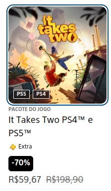 Embarque na jornada mais maluca da sua vida em It Takes Two, uma aventura de plataforma inovadora criada exclusivamente para o jogo co-op. Convide um amigo para se juntar de graça com o Passe de Amigo** e trabalhem juntos em uma variedade de desafios deliciosamente perturbadores. Domine habilidades de personagem únicas e relacionadas em cada nível.