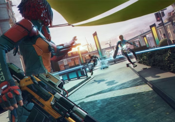 Respiração da NaturezaOs ambientes calmos e contemplativos de São Paulo são salpicados de tons impressionistas de verde, azul e marrom. Portanto, a transição para uma estética de ‘Guy Fieri conversível com Flamin’ Hot Cheetos’ é difícil de suportar por mais do que alguns minutos. Mas se você não quer entrar em lutas intensas ou fazer progressos significativos, é realmente muito divertido revisitar o jogo dessa forma. O fone de ouvido Virtual Boy fornece um efeito 3D perceptível, afastando a IU do que está acontecendo na tela. Há também uma nova profundidade nos ambientes e nas pessoas que os habitam, especialmente nas cidades. Não consigo obter capturas de tela do Virtual Boy, então você terá que confiar em mim quando digo que é algo assim: