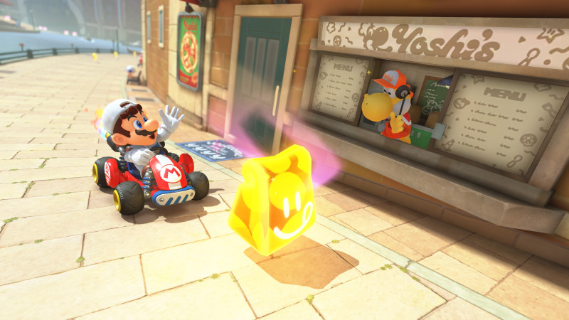 O outro novo item importante aparece apenas no modo de roam de Mario Kart World, que permite que os jogadores explorem o mundo com o conteúdo de seu coração. Ao longo do caminho, você pode pegar comida de traço, pequenos sacos de pedidos, de restaurantes para mudar a roupa do seu personagem. Cada roupa corresponde ao local em que a comida é encontrada e permanece permanentemente desbloqueada em todos os modos, para que você seja incentivado a levar seu personagem favorito em uma viagem e explorar o máximo que puder.