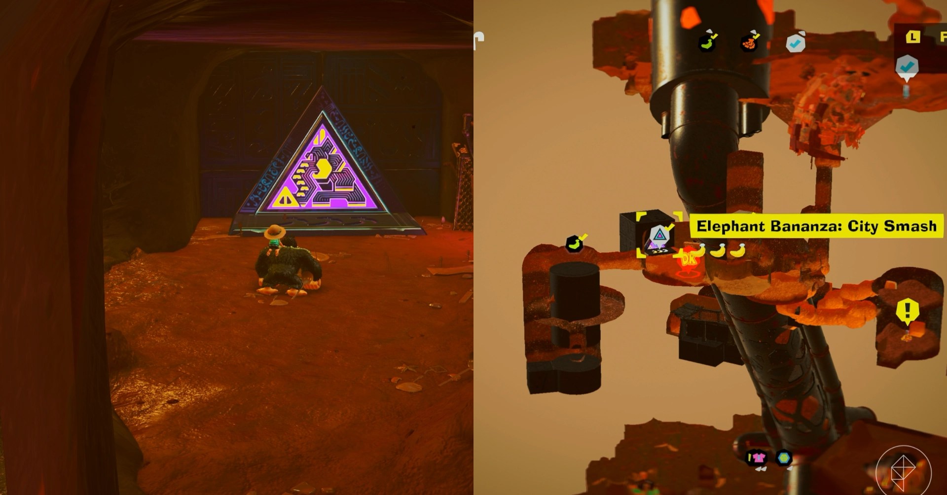 A entrada para a Bananza de elefantes: City Smash Challenge Course pode ser encontrada no mesmo túnel que o Banandium Gem #8 e #9.