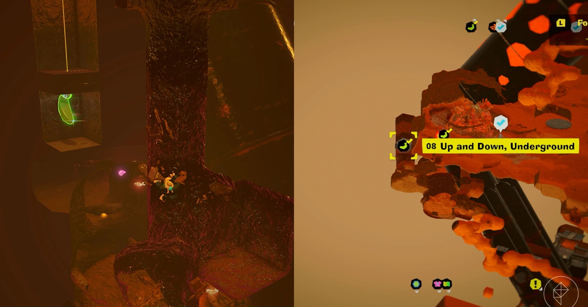 Para completar o desafio, você precisará cavar para baixo, evitando a lava e quebre o bloco instável na parte inferior.