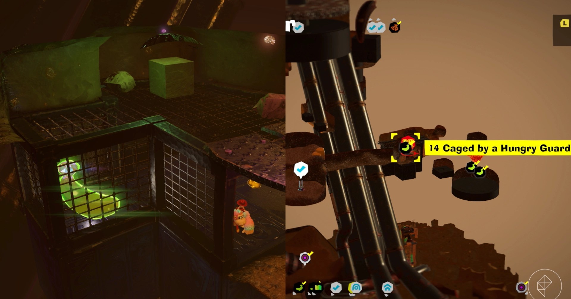 Do garfo de ajuste inferior do poço, olhe para a direita do peixe adormecido para encontrar uma placa com uma banana. Vá atrás da placa e comece a cavar em direção aos grandes tubos de metal para encontrar uma banana dentro de uma gaiola. Cavar a estrutura de metal e tirar o inimigo semelhante a serpente, sugando seu corpo de lava com bananza de elefantes. Depois que se foi, você estará livre para reivindicar sua doce banana.