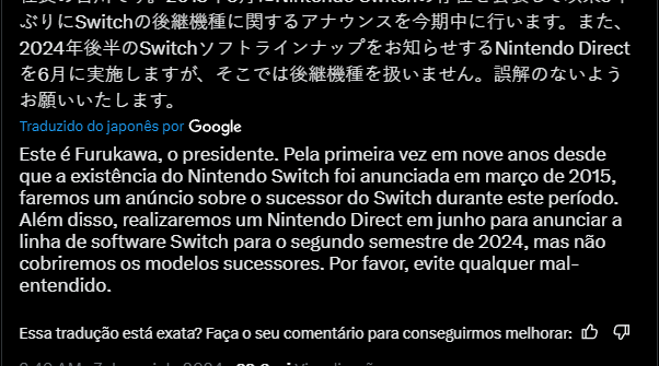 Nintendo anuncia sucessor do Nintendo Switch