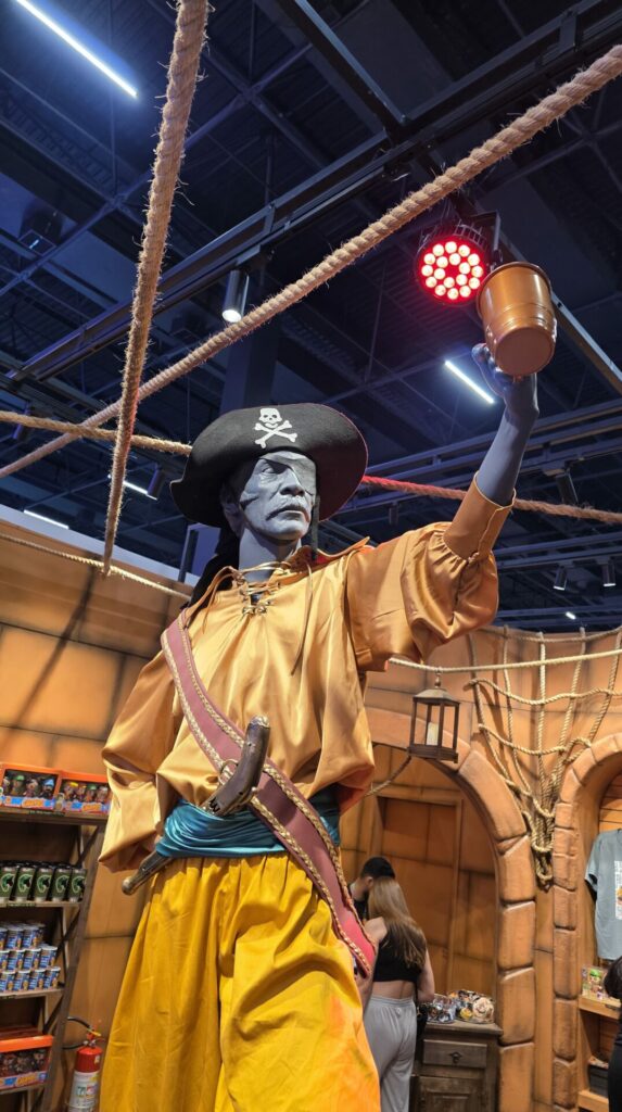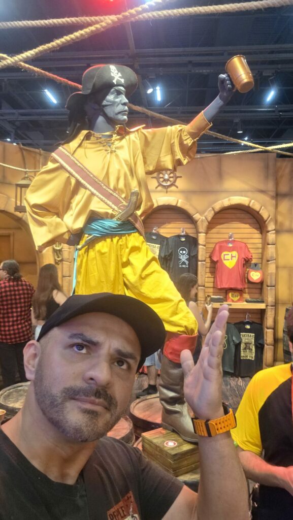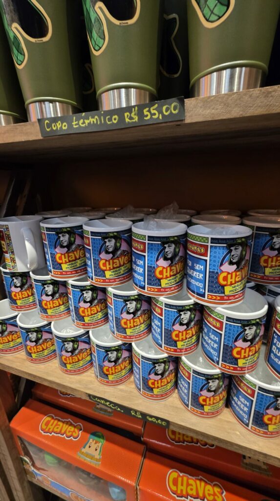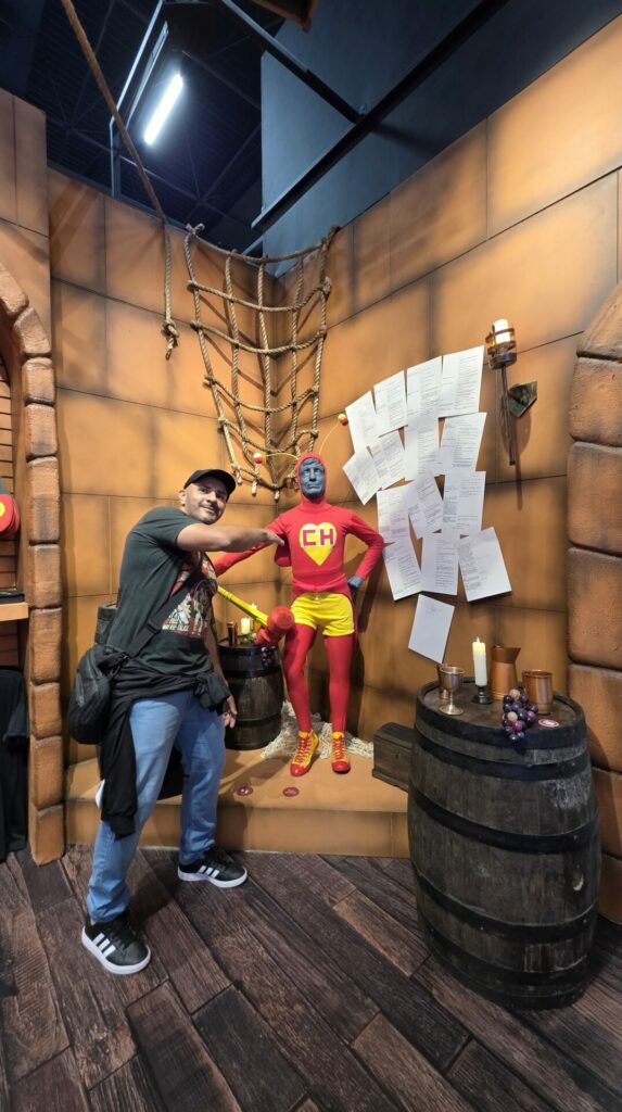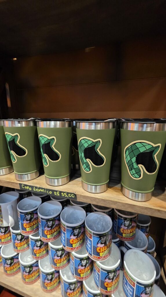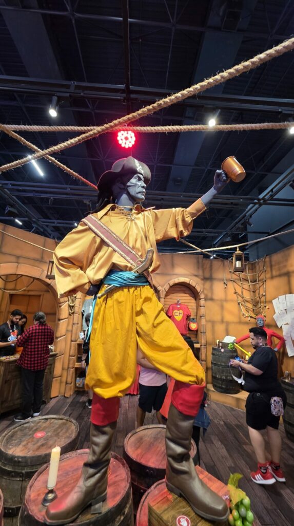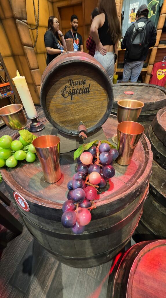 Eis aqui um dos espaços mais registravéis e curtíveis dessa edição. A réplica da Vila do Chaves permite que seu visitante sente na escada, pose ao lado do Chaves no barril, bata na porta do seu Madruga, arrisque a mesma coisa no 71, confira uma escultura do pirata Alma Negra e do próprio Chapolim. Os itens colecionáveis estão maravilhosos. A caneca escrito “PRE-RI-GO!” é maravilhosa e vale um presente e tanto.