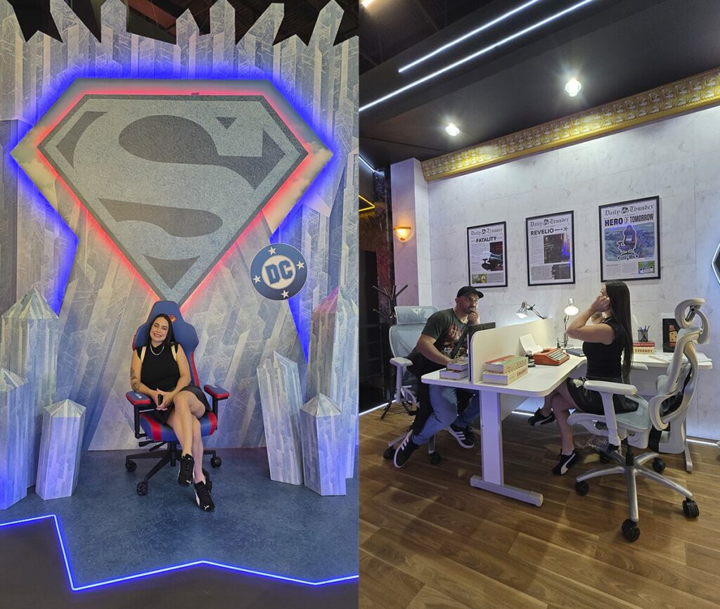 O herói máximo da DC está com um combinado de ativações e produtos bem interessantes, onde quem visita pode sentar numa típica mesa de jornalista raiz ou numa cadeira gamer com tema do homem de aço. Ambas rendem boas fotos