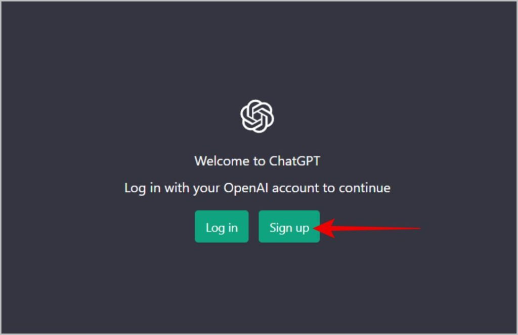 2. Em seguida, clique no botão Inscrever-se se você ainda não tiver uma conta no OpenAI. Se o fizer, você pode clicar no botão Login e fazer login na sua conta.