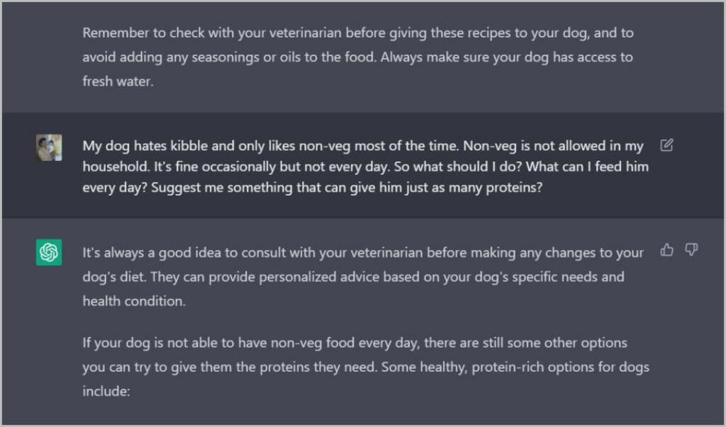 5. Você pode continuar a conversar mais. Em vez de apenas perguntas de uma frase, você também pode fazer perguntas complicadas e personalizadas. Na verdade, você pode responder com um parágrafo grande e o ChatGPT entenderá sua resposta e produzirá de acordo. No exemplo abaixo, a pergunta pode ser estranha e longa, mas ainda assim, a IA entendeu e deu uma solução que funciona naquela situação específica.