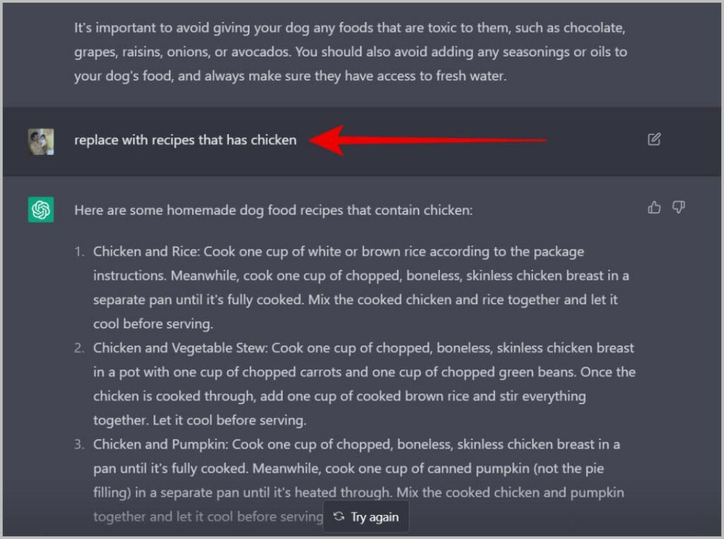 4. Você também pode responder ao ChatGPT para continuar a conversa. O ChatGPT é capaz de lembrar a conversa que você teve antes e entender o contexto da sua resposta. Por exemplo, como você pode ver na imagem abaixo, não foi incluída a palavra cachorro na pergunta, mas a IA ainda pode entender que a conversa é sobre cachorros.