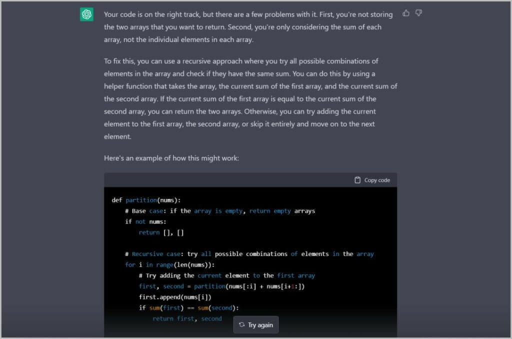 2. Você também pode pedir para depurar seu código para encontrar bugs. Aqui está um exemplo disso.