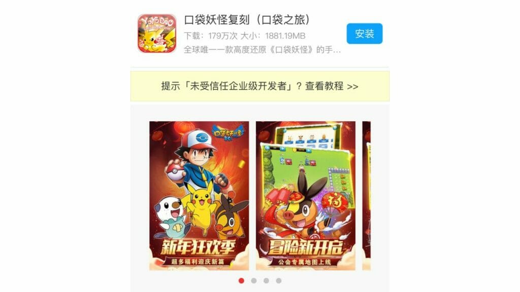 O jogo em questão, Pocket Monster Reissue, está disponível atualmente para download na App Store chinesa e em vários lojas de aplicativos Android na China, incluindo aquelas administradas pela Tencent Holdings, Huawei Technologies Co e Xiaomi.