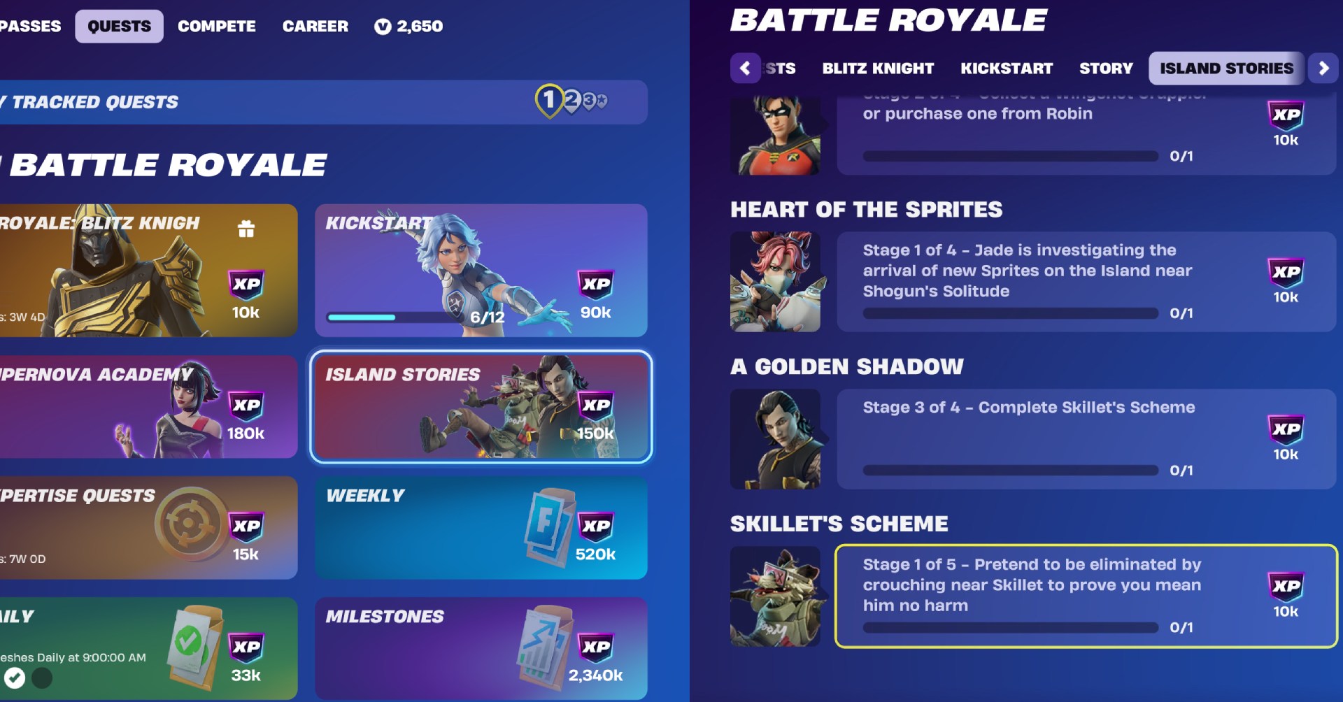 Leia mais aqui em inglês: https://www.polygon.com/fortnite-guide/607991/skillets-scheme-how-to-complete-quest.