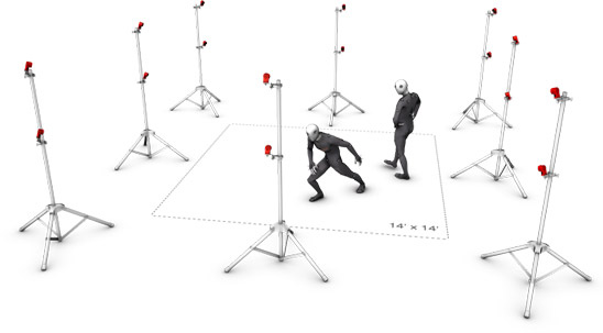 De roupa colocada, é hora de executar os movimentos desejados pelo diretor. E para captar isso, um sistema de câmeras posicionadas em 360° ao redor do ator fica encarregado de registrar todos os ângulos possíveis.