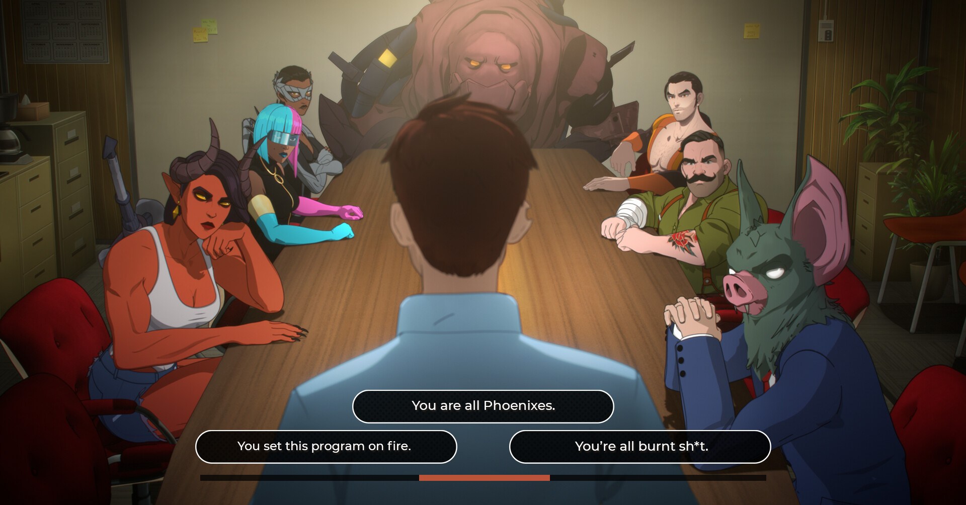 Mas não é algo que o Adhoc se preocupa no início, sabendo que as histórias e os personagens têm que crescer e que os próprios desenvolvedores podem se surpreender com as instruções que tomam. “É realmente muito orgânico e é bem perto de como você escreveria um programa de televisão, eu acho”, disse Herman. “O problema é que você só precisa escrever vários programas de televisão ou vários finais, vários grandes resultados para esses tópicos, e acho que essa é a parte que algumas pessoas talvez não entendam.”