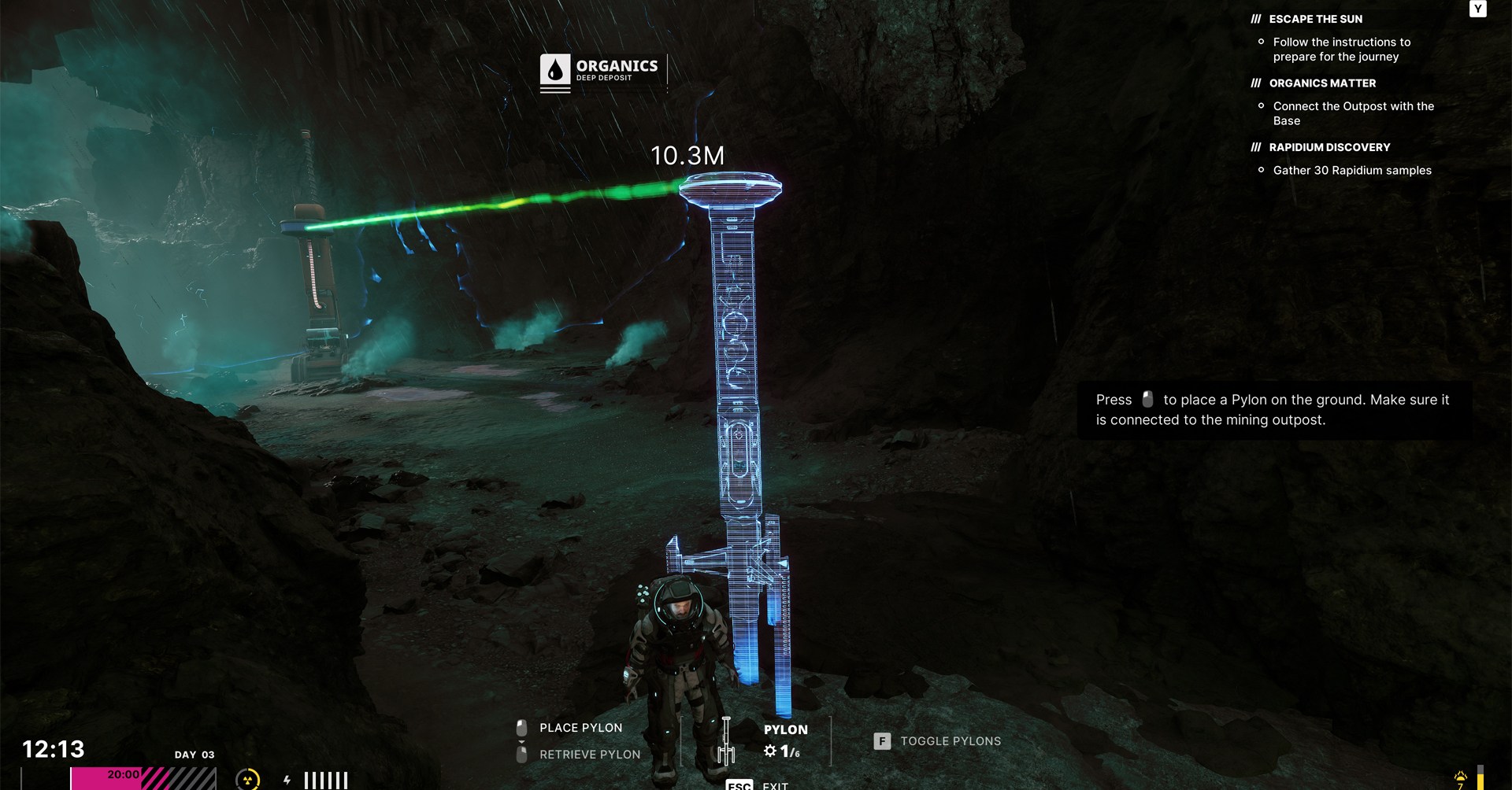 Observe que o depósito orgânico está em uma borda mais alta, que pode ser escalada com um gancho de escalada. Se você não tiver um, também pode desviar -se à esquerda e, quando vê o Rapidium à sua frente, vire à direita. Se você seguir esse caminho, poderá alcançar o depósito orgânico e estabelecer uma conexão sem precisar de um gancho de escalada.