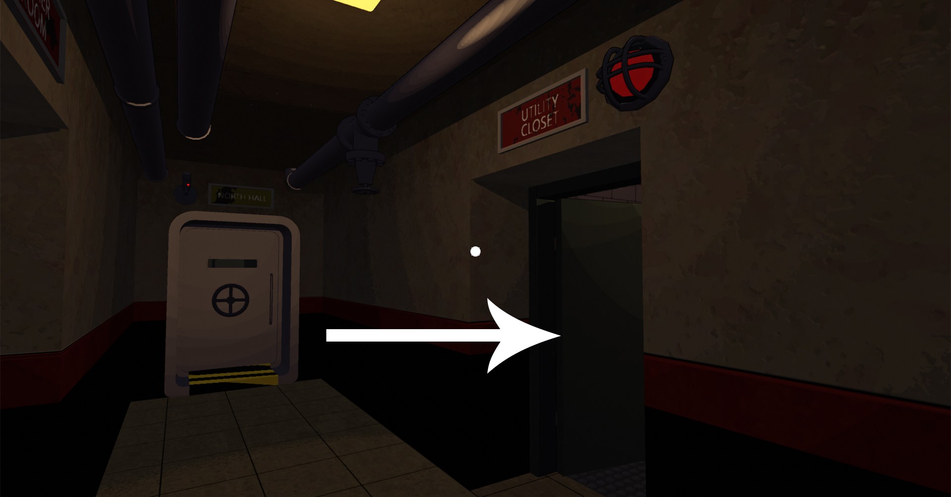 Siga o caminho para a direita. A primeira porta está trancada, mas o segunda porta à direita pode ser aberto. Este é o armário de utilidade.
