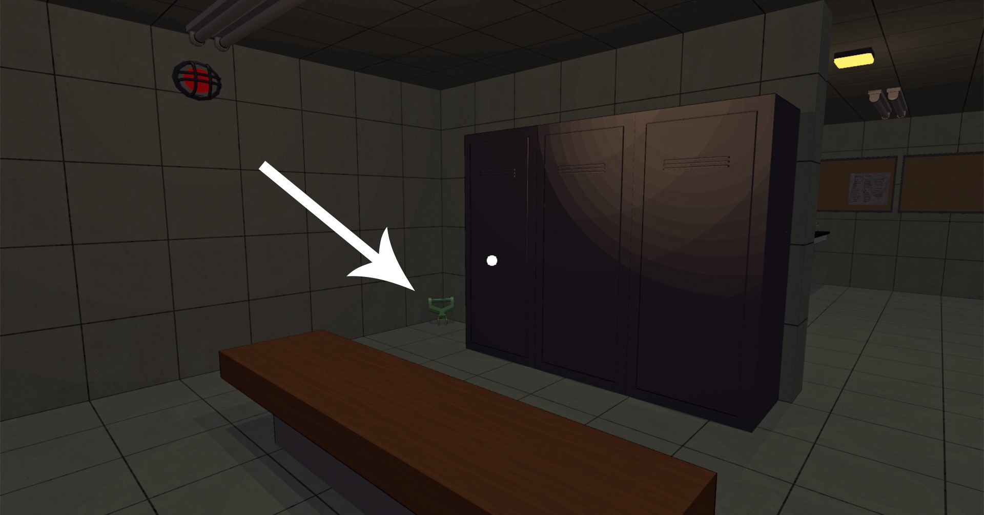 Volte para o corredor. Vire à direita, na direção da sala de utilidade, mas desta vez, pegue a primeira porta à sua esquerda, levando para o Vestiário.