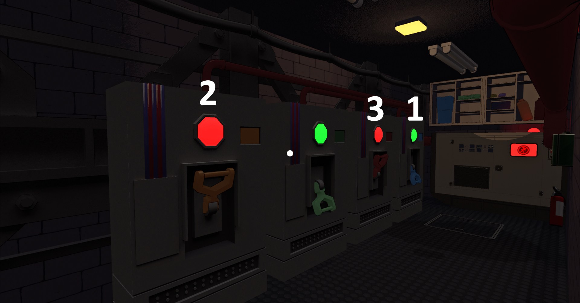 Dentro da sala, na parede à esquerda, você verá quatro luzes (vermelhas ou verdes) e três interruptores – infelizmente, A segunda luz está faltando seu interruptor! Você precisa encontrá -lo antes de resolver o quebra -cabeça de energia.
