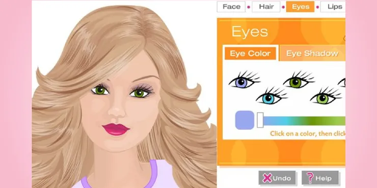 Barbie Superstar Makeover pode ter sido um jogo em flash, mas qualquer fã da Barbie que estava por perto durante o início dos anos 2000 provavelmente jogou sem parar. O game é basicamente o que os jogadores agora pensam como um criador de personagem – você foi presenteado com um close da Barbie e pode personalizar seu rosto, cabelo, olhos, lábios e acessórios.