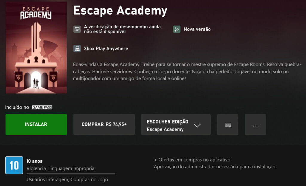 O primeiro é Escape Academy, um jogo Xbox Game Pass novinho em folha, que foi adicionado à biblioteca no início deste mês. Escape Academy é um jogo cooperativo em tela dividida que oferece jogo local e online, com jogadores se unindo para resolver quebra-cabeças de salas de fuga. Escape Academy é um jogo curto, e qualquer fã de quebra-cabeças que queira um novo jogo cooperativo para jogar certamente deve considerar se aventurar.