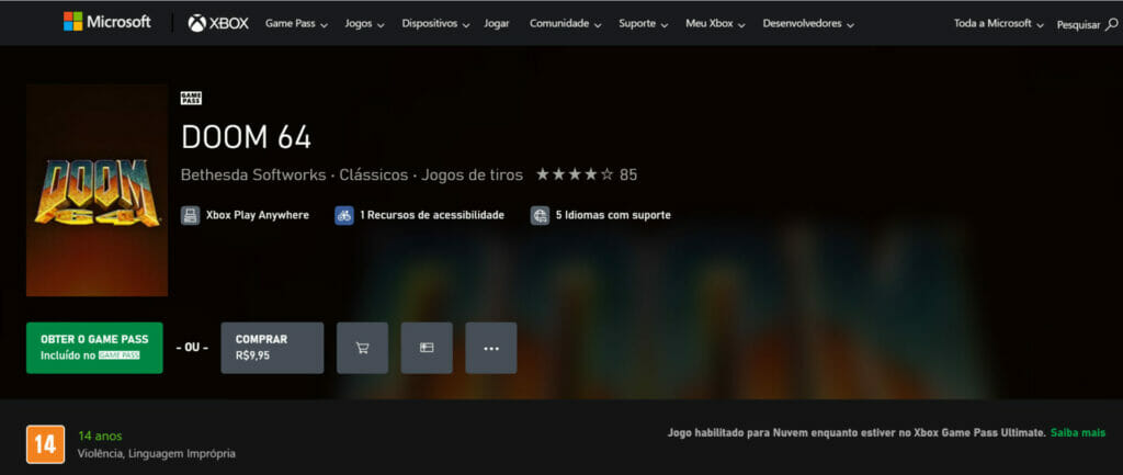 Originalmente lançado para Nintendo 64 em 1997, em Doom 64, lute contra demônios na sua cruzada para caçar a Mother of Demons e deter a invasão infernal. Enquanto batalha e avança por mais de 30 fases eletrizantes, fique atento a armas aprimoradas e segredos que ajudarão a acabar com a ameaça demoníaca. Disponível no Game Pass!