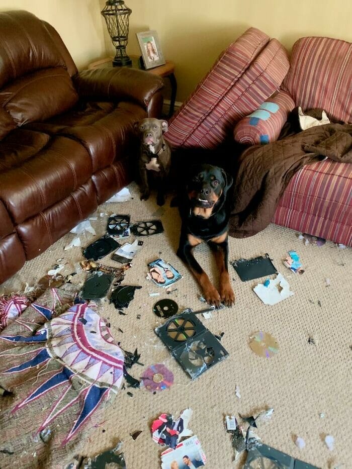 O dono desse cachorro provavelmente achou que o pet ia fazer carinha de culpado ou mostrar, de alguma forma, certo arrependimento por ter comido o controlador de PS. Errado. Ele simplesmente fez cara de paisagem, como se não soubesse de nada. Até parece mais um gato.