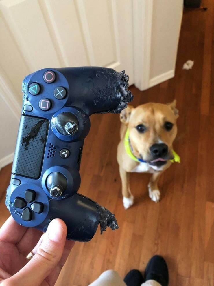 Em algum momento da vida, todo gamer que tem pets em casa irá passar por algumas dessas situações nada legais que você vai ver nas fotos abaixo. O post pode ser um bom reforço pra você lembrar de não deixar seu videogame jogado em qualquer lugar, principalmente se seu cachorro tiver fácil acesso a ele. Confira as ‘obras de arte’ que os bichinhos fizeram nos controladores de PlayStation dos seus donos. Mas antes, já colocou a ração do seu dog hoje?