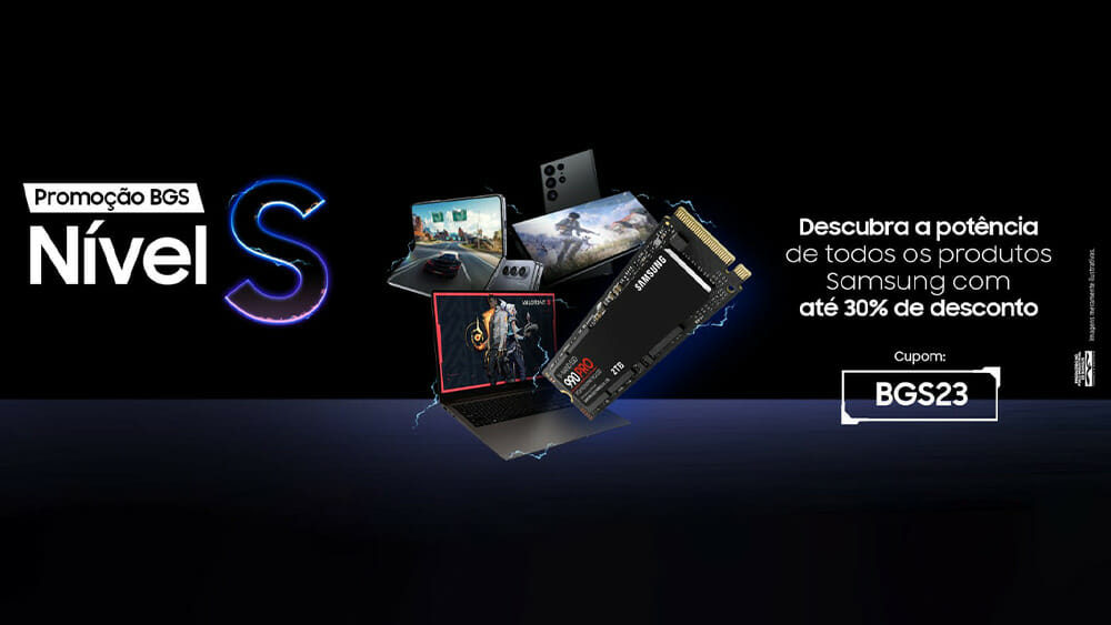 Smartphones, tablets notebooks, smartwatches e dispositivos de memória e armazenamento também terão ofertas exclusivas na BGS 2023. Com o cupom BSG232, já é possível comprar no app e Loja Online Samsung smartphones de toda a linha Galaxy S23 e os novos dobráveis Galaxy Z Fold5 e Z Flip5, além da linha Galaxy Watch6, Galaxy Tab S9 e SSDs com 30% de desconto. Já o Galaxy Book3 Ultra está com 20% de desconto. Além disso, para os visitantes da feira serão oferecidas condições ainda mais especiais e brindes para quem adquirir os produtos diretamente com os promotores Galaxy.
