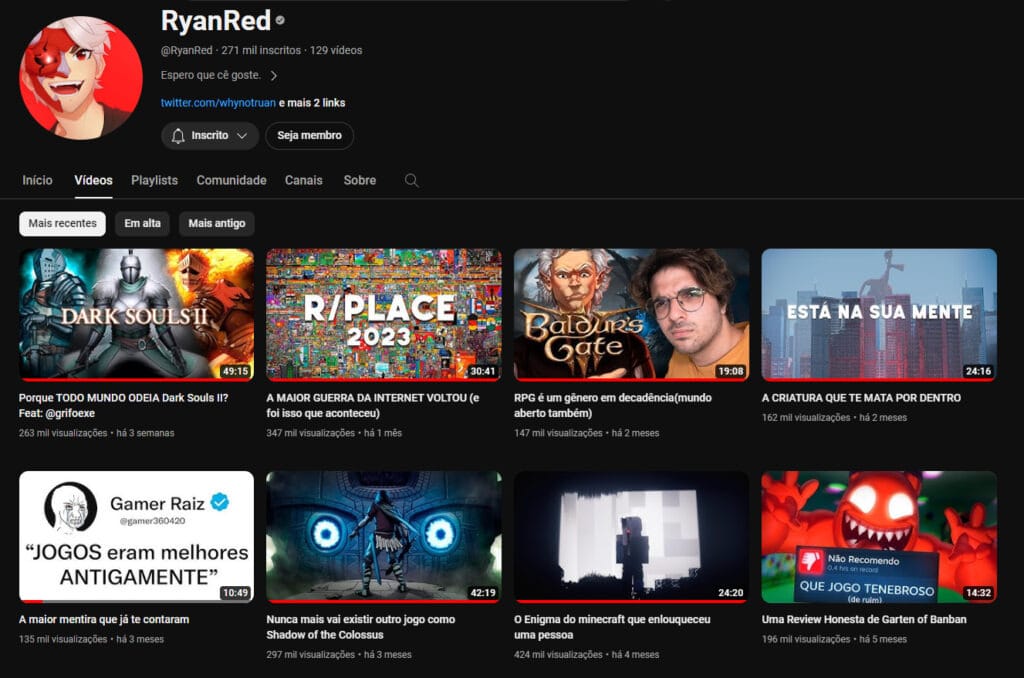 Ruan ou RyanRed começou nos dizendo o por que decidiu começar com aquele nicho específico dentro da plataforma: “Eu via um nicho que era muito pequeno no Brasil, tanto que eu não sabia nem como procurar ele no YouTube, então me inspirei em alguns criadores brasileiros e gringos que eu gostava, estudei bastante, adquiri experiência e dei vida aos meu projetos. Foi assim que crei meu “estilo” de conteúdo” diz Ruan.