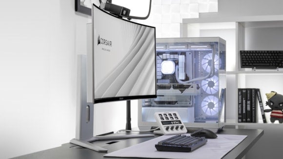 Fino e com o design todo em branco, sua tela WQHD usa um painel da Samsung de 2024 para permitir uma grande imersão a 34 polegadas. Seu rácio de aspecto cinematográfico (21:9), curvatura de 1800R, iluminação até 1000-nit, e cores de 99% DCI-P3 são os destaques que foram apresentados pela Corsair para este monitor.