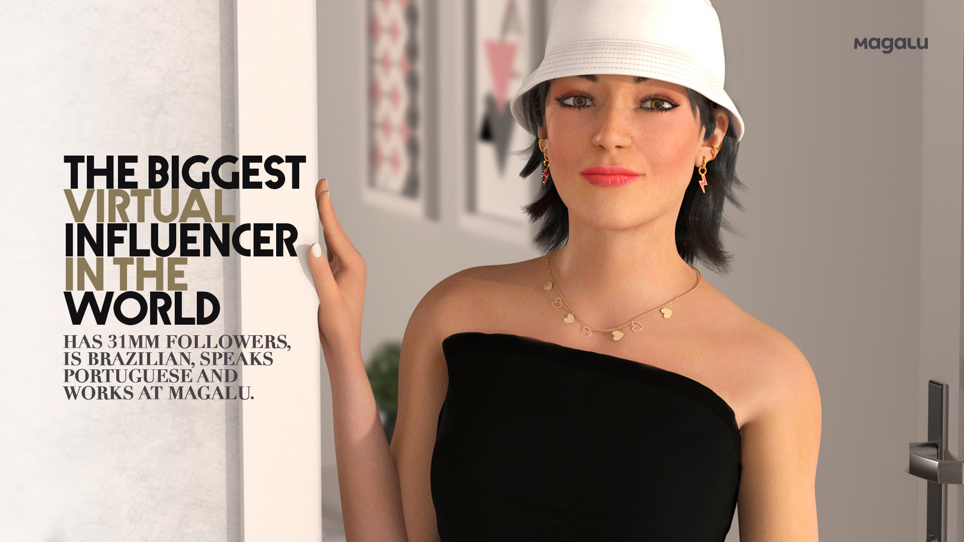 E de acordo com o site VirtualHumans.org, a personagem Magalu, criada em 2003 para dar suporte online em produtos da rede varejista Magazine Luiza, está pelo segundo ano consecutivo como a maior influencer digital do mundo, passando nomes como o da boneca Barbie, que também conta uma versão influencer.