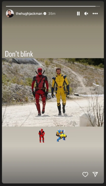 Ryan Reynolds, que interpreta o Mercenário com boca na trilogia Deadpool e o mesmo sem boca em X-Men Origins, postou uma foto dele e Jackman vestindo seus trajes de super-heróis em sua conta do Instagram. Recentemente, vazaram fotos do set do novo traje de Deadpool de Reynolds para o filme. No entanto, os fãs ficaram desapontados por Jackman não ter sido visto nessas fotos. Reynolds respondeu dando aos fãs uma boa olhada em ambos os atores em seus trajes cômicos.