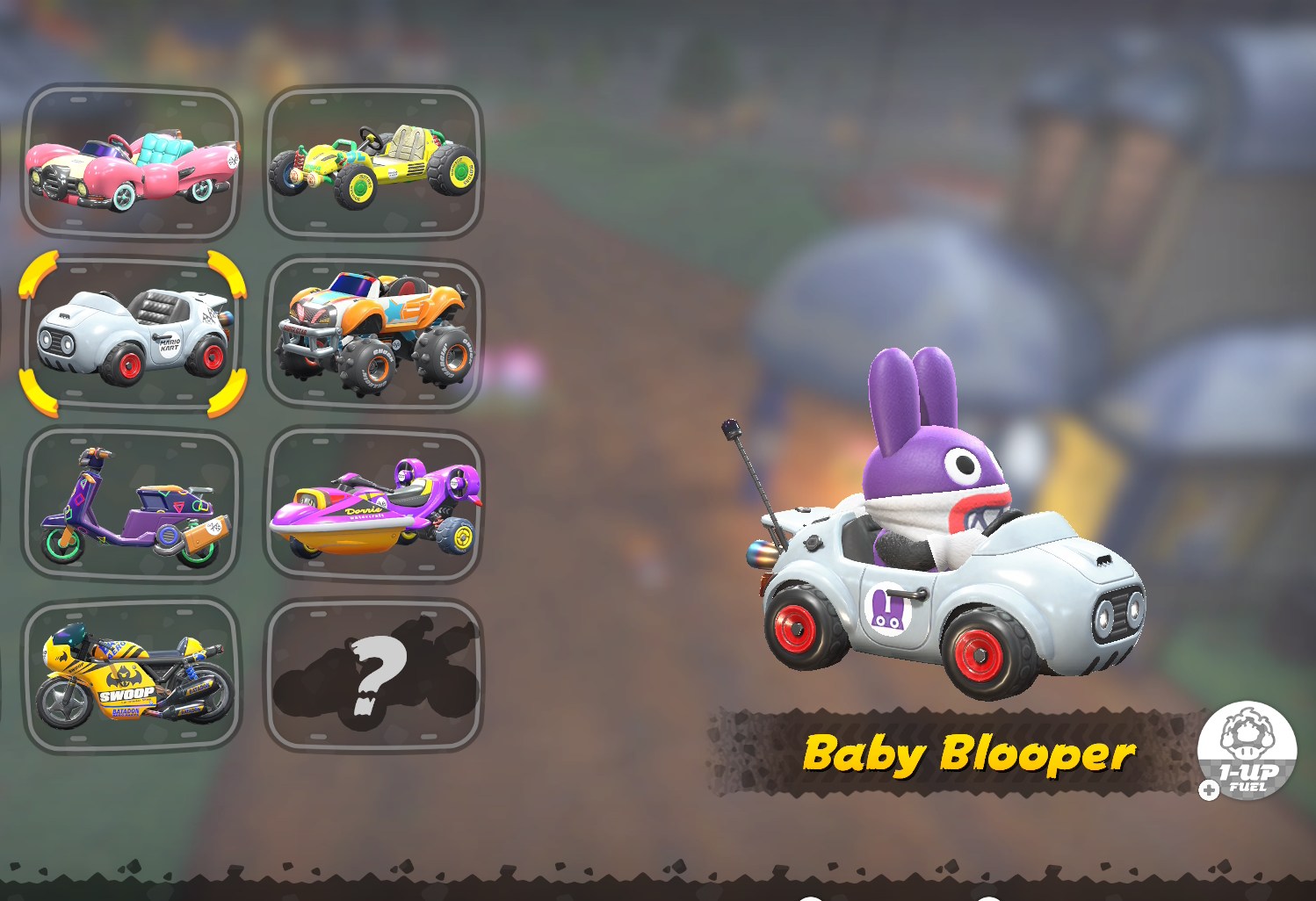 No começo, pensei que era uma das opções mais frias. Elegante, compacto, branco em vermelho, o Blooper Kart é elegante e atrai os olhos sem se sentir abertamente que você está em pavão. Também ajuda que você não precise desbloquear o kart, então é claro que as pessoas estão gravitando em direção a ele. Mas ver o Baby Blooper tantas vezes começou a tirar a magia.
