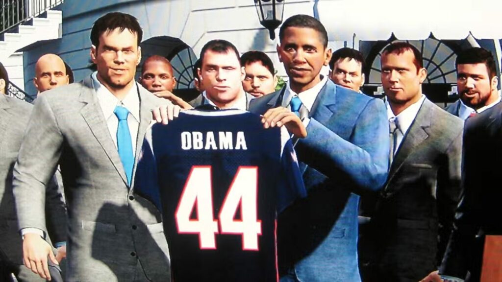 1. Barack Obama parabeniza os jogadores do Madden NFL 11