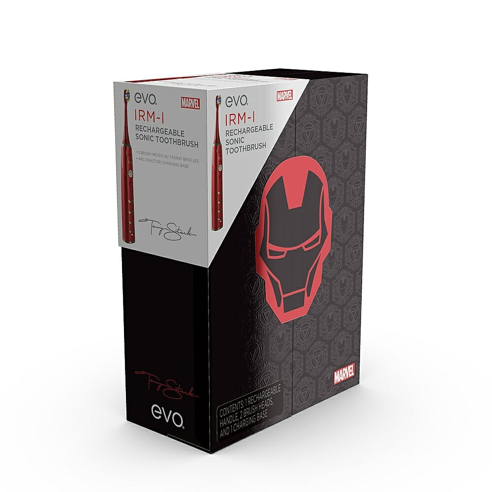 Acha que apenas as crianças têm direto a ganhar escovas de dentes elétricas com tema da cultura pop? Pois saiba que agora chegou a vez dos adultos se divertirem. A EVO lançou uma escova de dentes sônica recarregável do Homem de Ferro, da Marvel.