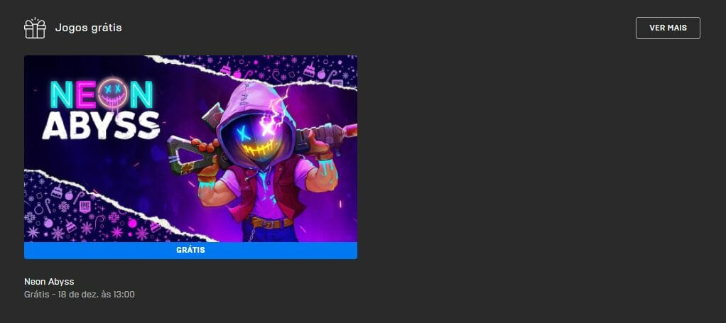 Diferente do formato tradicional onde um dos jogos continua liberado para ser reinvidicado, Shenmue III não está mais disponível, ficando apenas Neon Abyss. Ele ficará disponível até amanhã, 18 de dezembro às 13 horas, quando sairá e dará lugar para… ainda não se sabe já que a Epic Games Store não informou qual o quais títulos estarão na promoção dos jogos gratuitos.