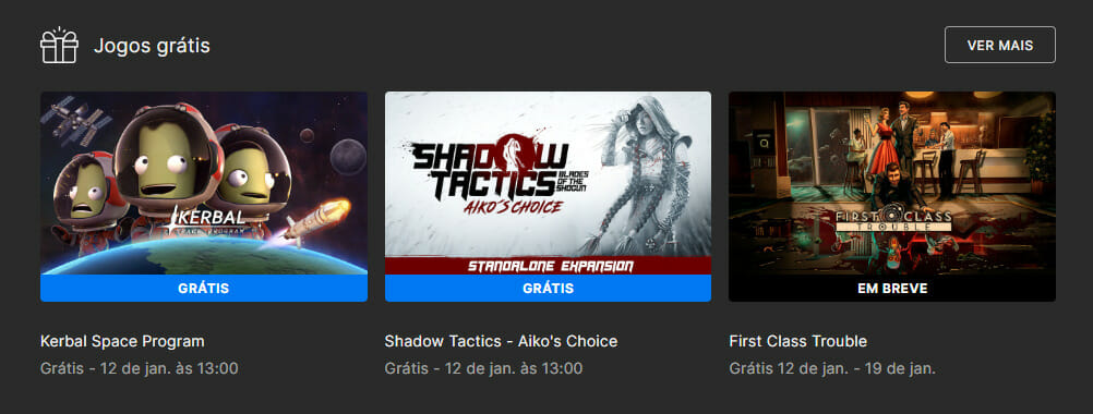 Depois de vários presentes de final de ano com seus Jogos Misteriosos, a Epic Game Store começou o ano liberando para seus usuários dois jogos gratuitos e revelando o próximo que estará disponível no dia 12 de janeiro. Os atuais são: Kerbal Space Program e Shadow Tactics – Aiko’s Choice que entraram no lugar de Dishonored – Definitive Edition e Eximius: Seize the Frontline.