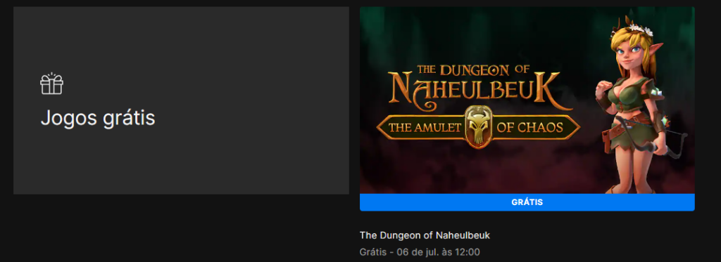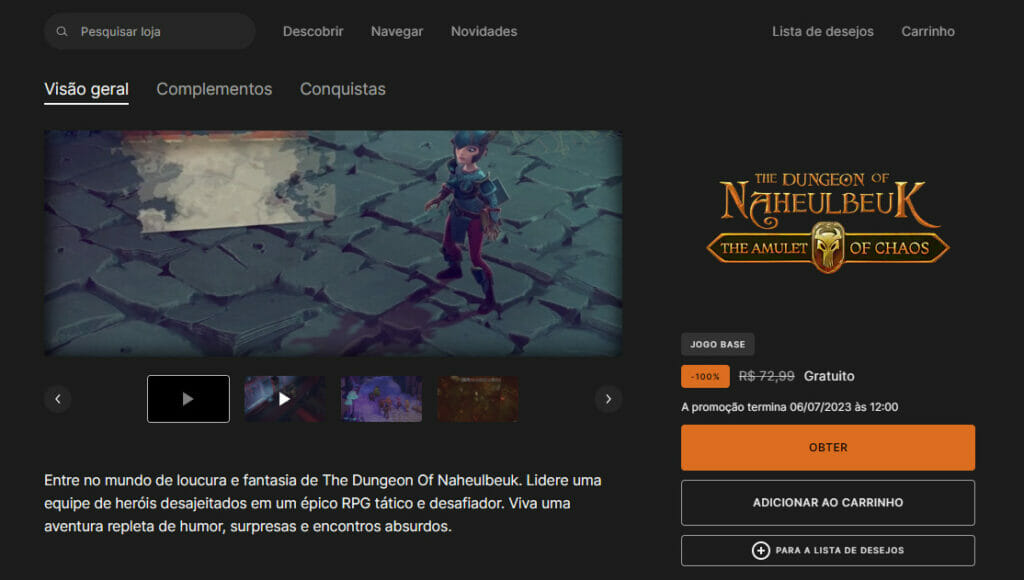 Mas para que possa reivindicá-los, existe um prazo, e este novo game estará disponível até o dia 06 de julho, próxima quinta-feira, até às 12 horas, quando será substituído por… sim, está confuso pois o site da Epica Games no Brasil não fez a divulgação ainda, mantendo o jogo The Dungeon Of Naheulbeuk: The Amulet Of Chaos que é o lançamento de hoje, como – novamente – da próxima semana.