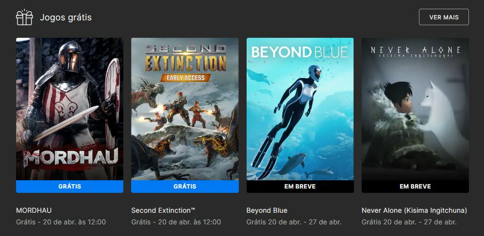E ao contrário de serviços como PS Plus ou Xbox Game Pass, os jogos gratuitos da Epic Games Store são totalmente gratuitos e não requerem compra adicional. No momento, os jogos gratuitos da Epic Games Store são Mordhau e Second Extinction. Ambos os jogos estarão disponíveis para os usuários da Epic Games Store reivindicarem gratuitamente entre agora e 20 de abril.