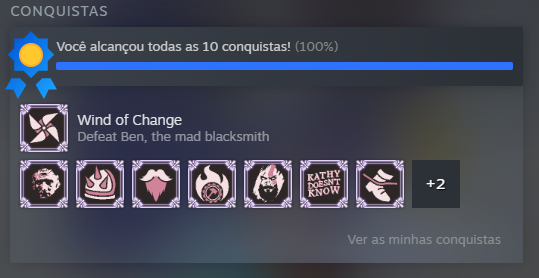 As magias, os ataques, esquivas, é tudo muito bem feito, bem renderizado e animado sendo o único problema, e talvez isso seja por estar na sua versão demo ainda, é que ele não apresenta qualquer desafio. Eu morri 2x no máximo e foi por descuido mesmo. O jogo possui 10 conquistas na Steam e em menos de 1 hora eu consegui todas elas.