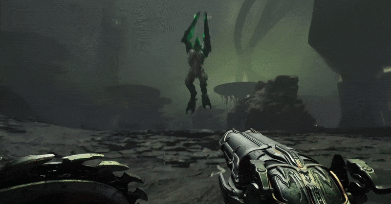 Doomguy é mantido em reserva por algum tipo de grupo alienígena chamado Maykrs (A TRAGEDEIGH pronunciado como “fabricantes”), relaxando em um navio flutuando acima dos campos de batalha humano-versus-demônio. Ele é quase como o soldado de inverno, pois é mantido como um prisioneiro, entre ser chamado por missões de matança de demônios.
