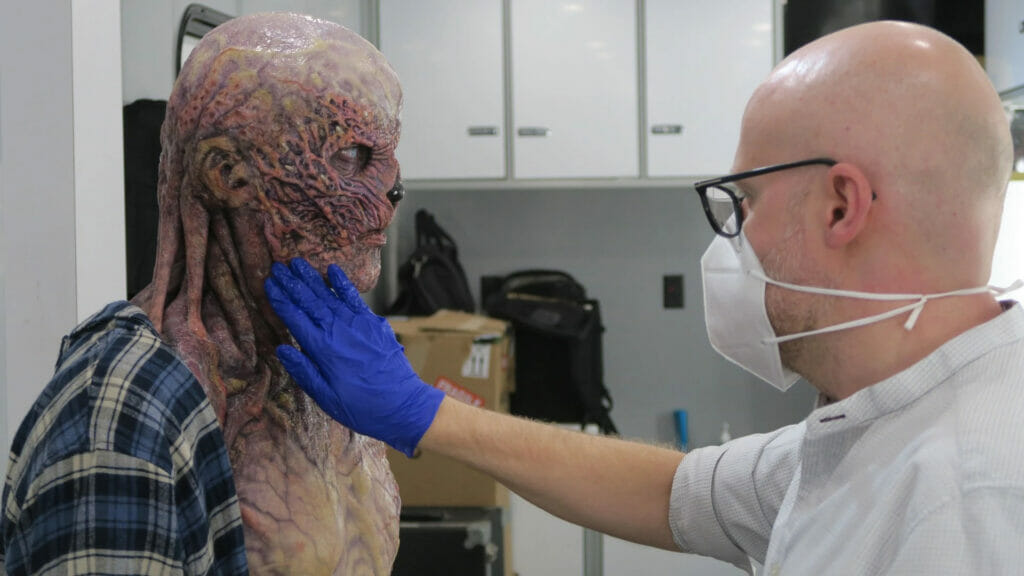 Barrie Gower confere maquiagem do personagem ‘Vecna’, de Stranger Things. (Imagem:  BGFX Ltd.)